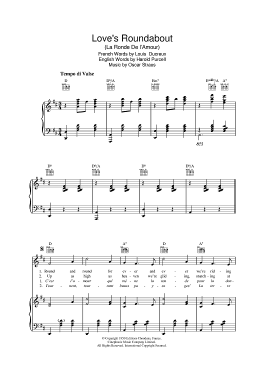 Digital Sheet Music for Love's Roundabout (La Ronde De L'Amour) by Oscar Straus, Louis Ducreux, Teddy Johnson scored for Piano/Vocal/Chords; id:394970