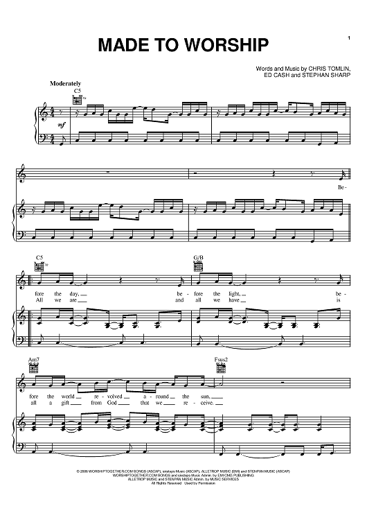 Digital Sheet Music for Made To Worship by Chris Tomlin, Ed Cash, Stephan Sharp scored for Piano/Vocal/Chords; id:395091