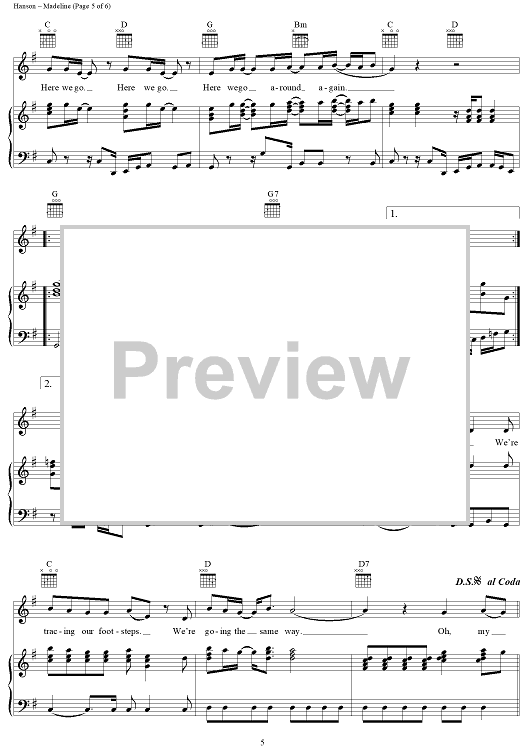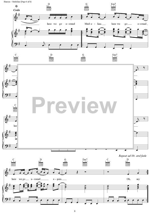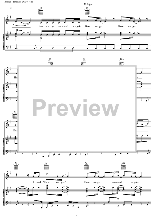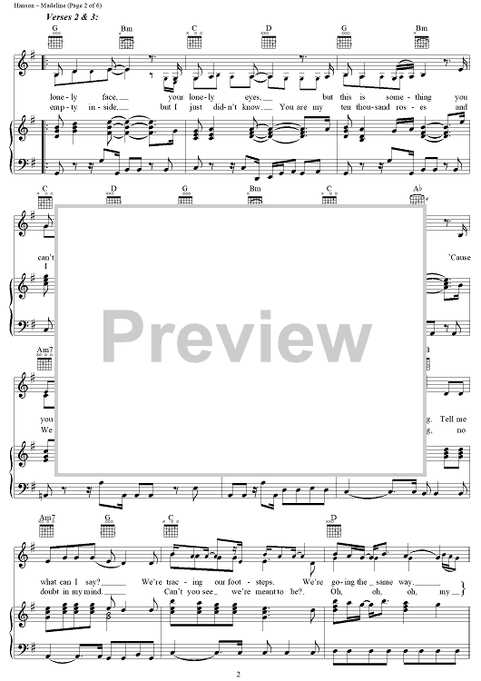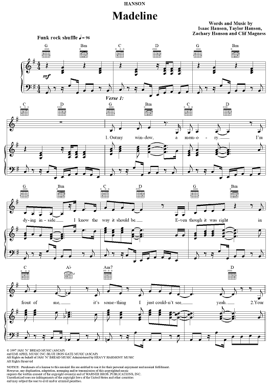 Digital Sheet Music for Madeline by Isaac Hanson, Taylor Hanson, Zac Hanson, Clif Magness, Hanson scored for Piano/Vocal/Chords; id:111818