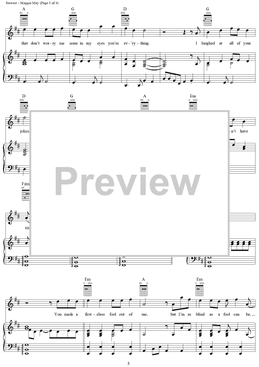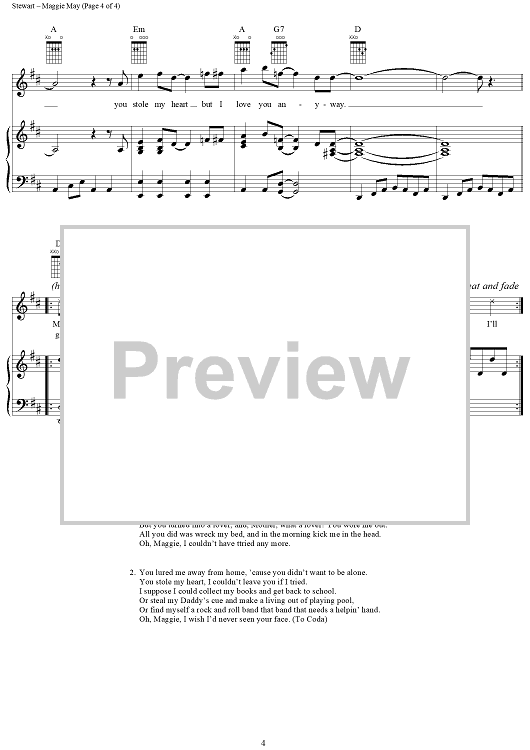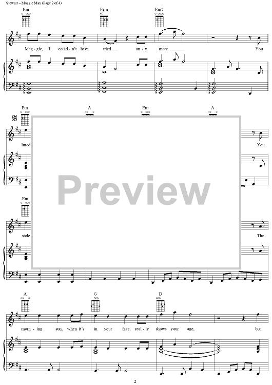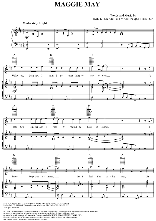 Digital Sheet Music for Maggie May by Rod Stewart, Martin Quittenton scored for Piano/Vocal/Chords; id:286548