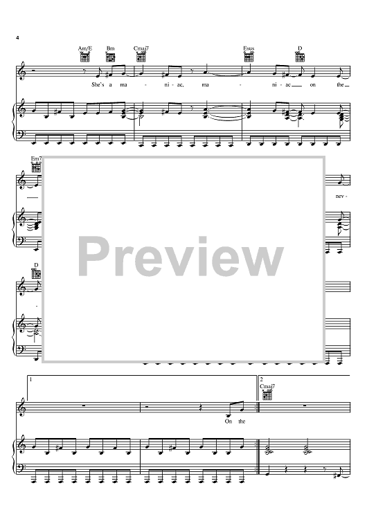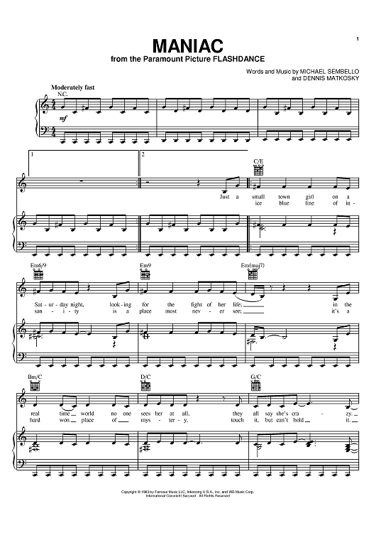 Digital Sheet Music for Maniac by Dennis Matkosky, Michael Sembello scored for Piano/Vocal/Chords; id:394951