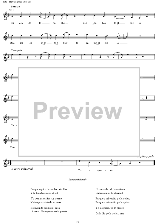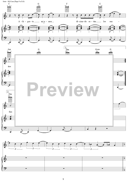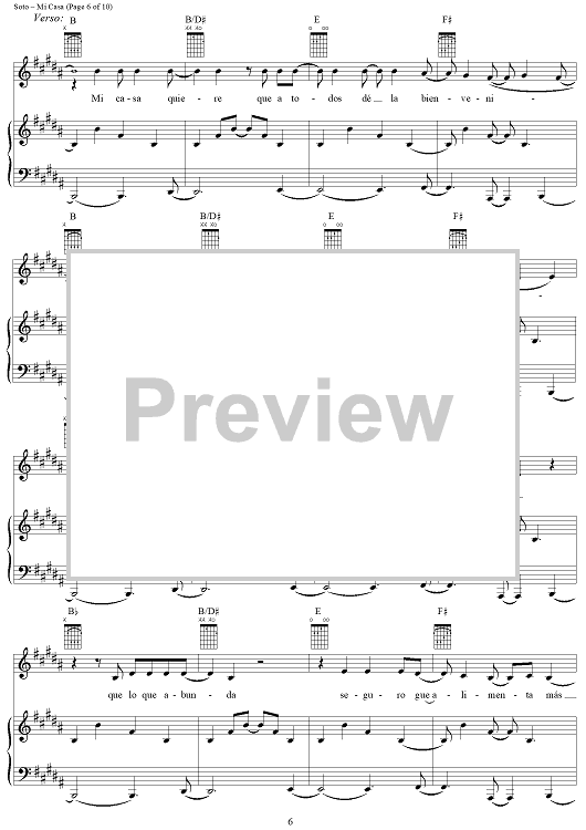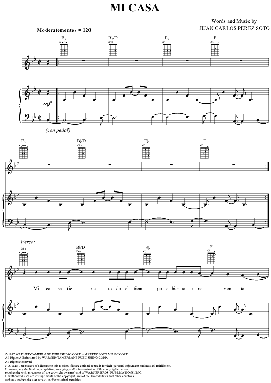 "Mi Casa" Sheet Music by Juan Carlos Perez Soto