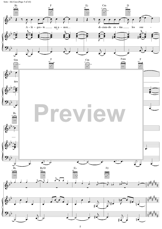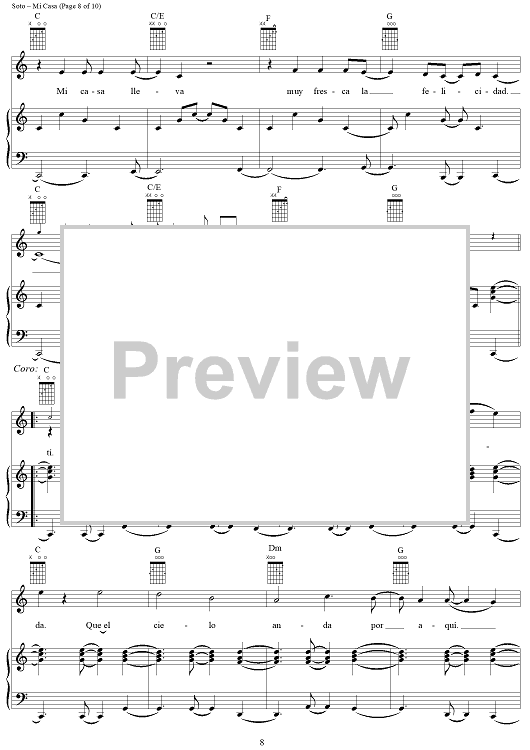 Digital Sheet Music for Mi Casa by Juan Carlos Perez Soto scored for Piano/Vocal/Chords; id:120611