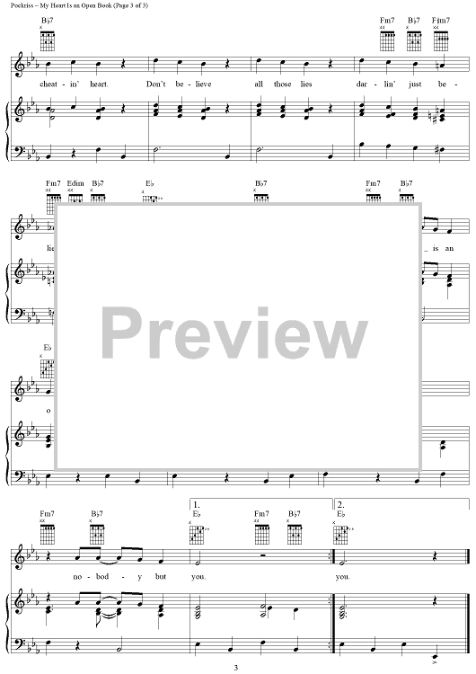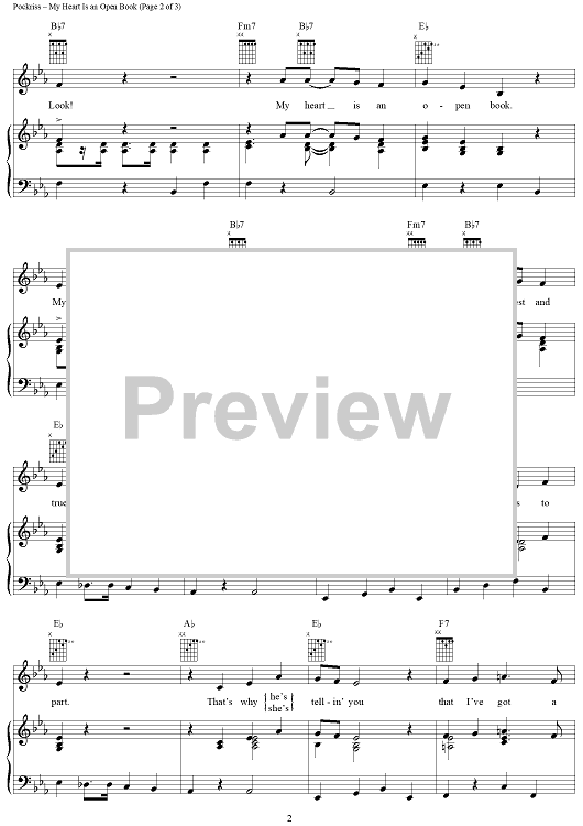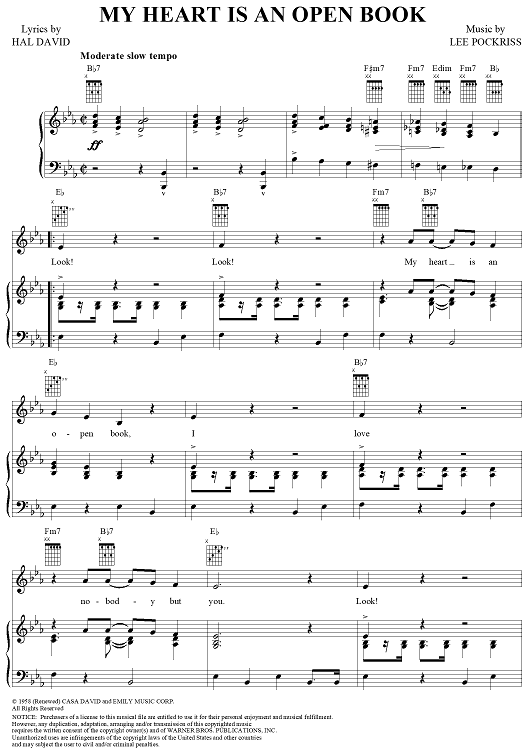 Digital Sheet Music for My Heart Is an Open Book by Hal David, Lee Pockriss, Carl Dobkins, Jr. scored for Piano/Vocal/Chords; id:297241