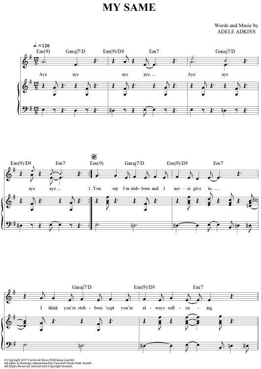 Digital Sheet Music for My Same by Adele Adkins, Adele scored for Piano/Vocal/Chords; id:421654