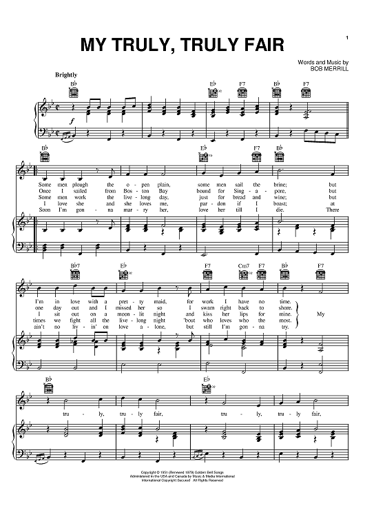 Digital Sheet Music for My Truly, Truly Fair by Guy Mitchell, Bob Merrill scored for Piano/Vocal/Chords; id:395167