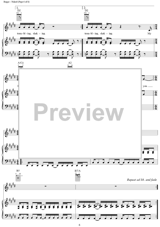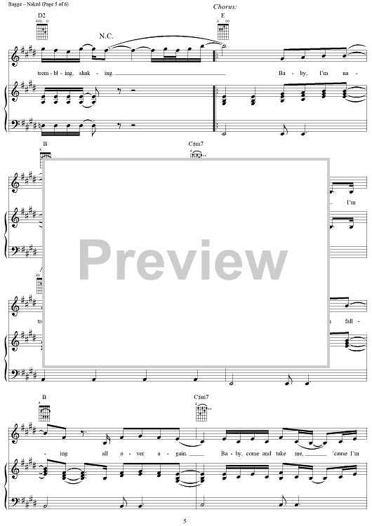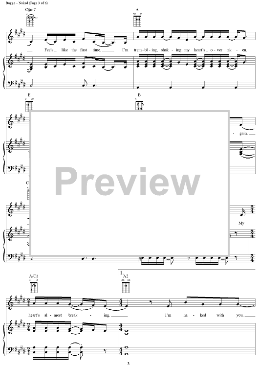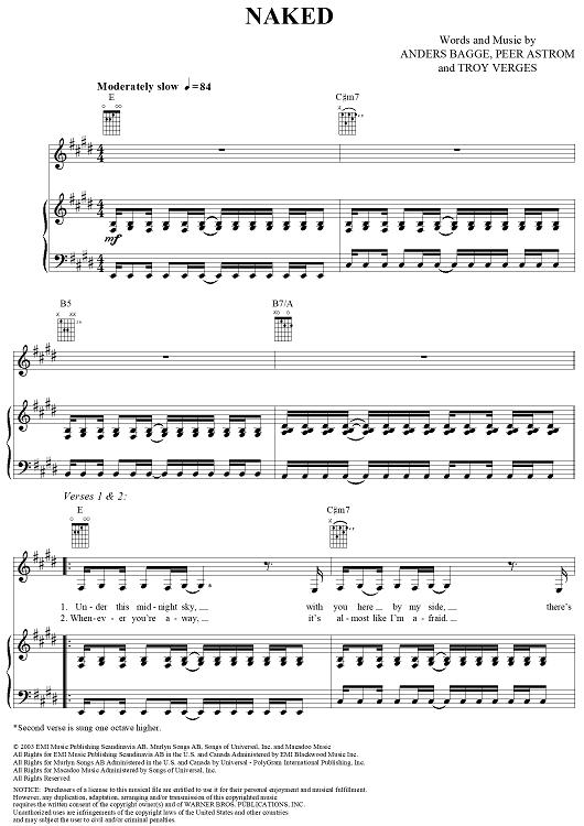 Digital Sheet Music for Naked by Celine Dion, Troy Verges, Peer Astrom, Anders Bagge scored for Piano/Vocal/Chords; id:296479