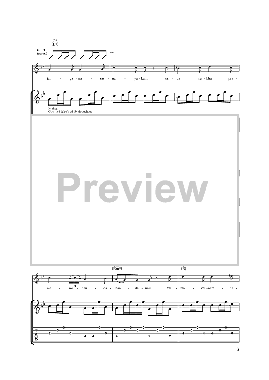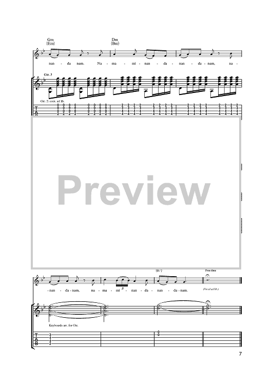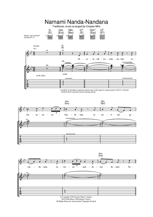 Digital Sheet Music for Namami Nanda Nandana by Kula Shaker, Crispian Mills, Trad scored for Guitar Tab; id:394926