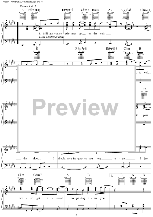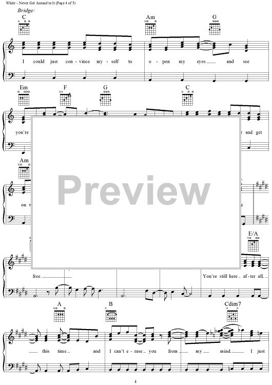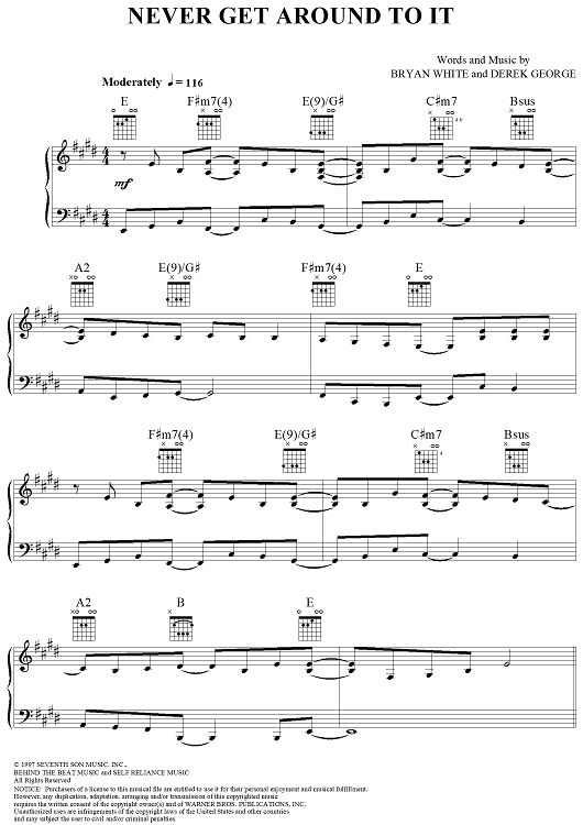 Digital Sheet Music for Never Get Around To It by Bryan White, Derek George scored for Piano/Vocal/Chords; id:241150