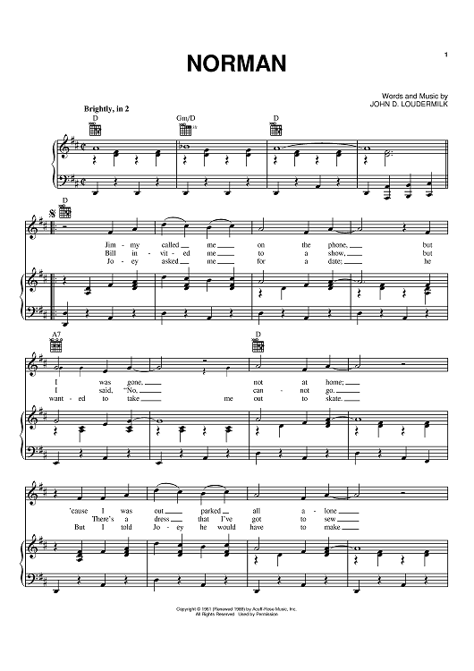 Digital Sheet Music for Norman by John D. Loudermilk, Sue Thompson scored for Piano/Vocal/Chords; id:367822