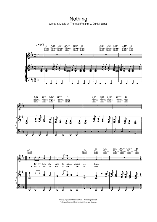 Digital Sheet Music for Nothing by Daniel Jones, Tom Fletcher, McFly scored for Piano/Vocal/Chords; id:386879