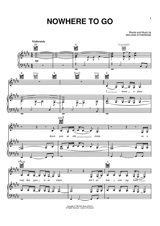 "Nowhere To Go" Sheet Music by Melissa Etheridge