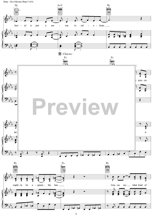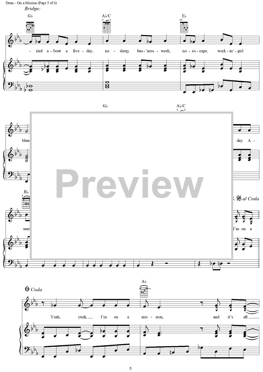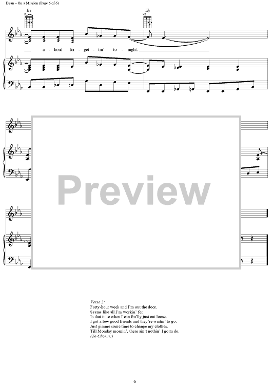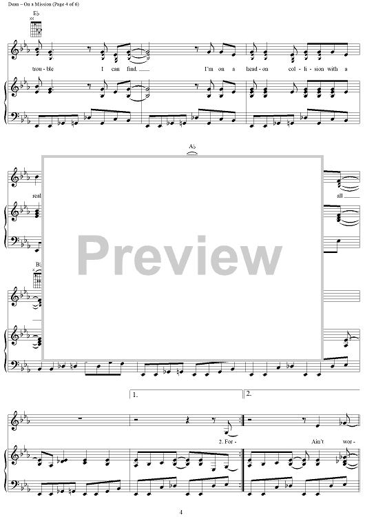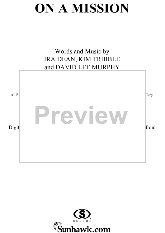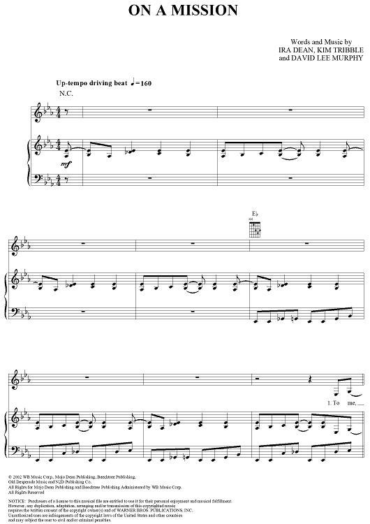 Digital Sheet Music for On a Mission by Kim Tribble, David Lee Murphy, Trick Pony, Ira Dean scored for Piano/Vocal/Chords; id:294595
