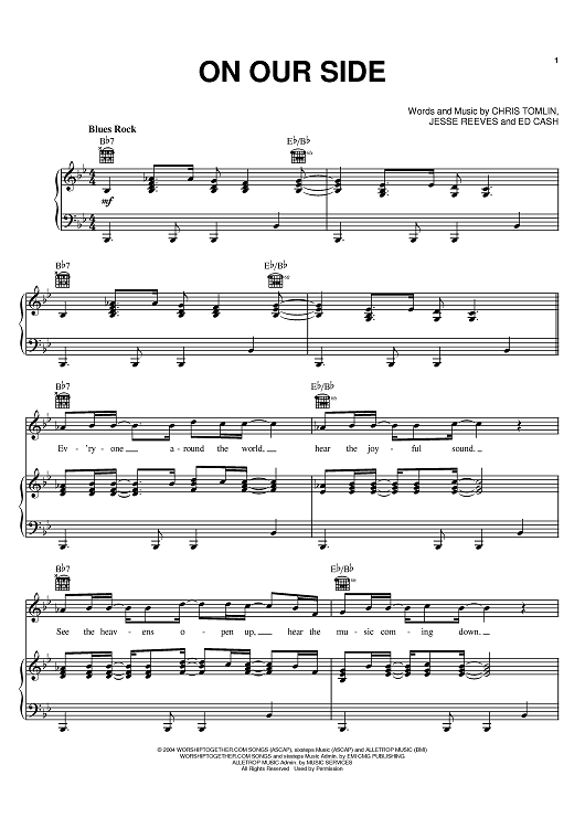 Digital Sheet Music for On Our Side by Chris Tomlin, Jesse Reeves, Ed Cash scored for Piano/Vocal/Chords; id:394633
