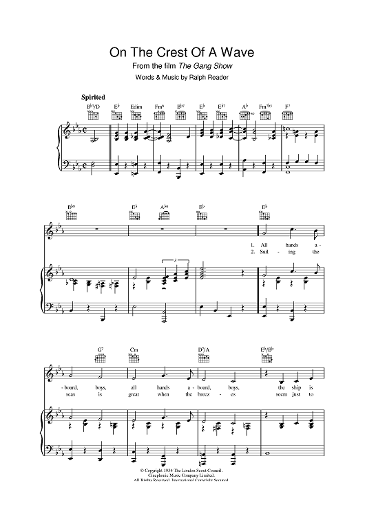 Digital Sheet Music for On The Crest Of A Wave (from The Gang Show) by Ralph Reader scored for Piano/Vocal/Chords; id:394999