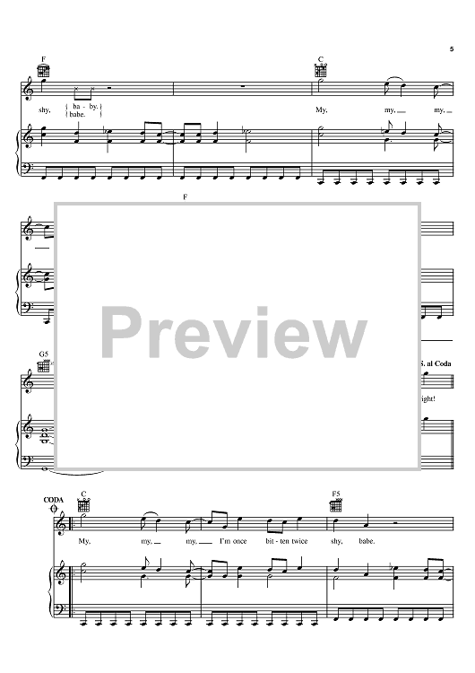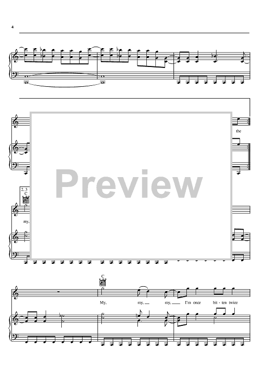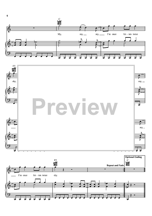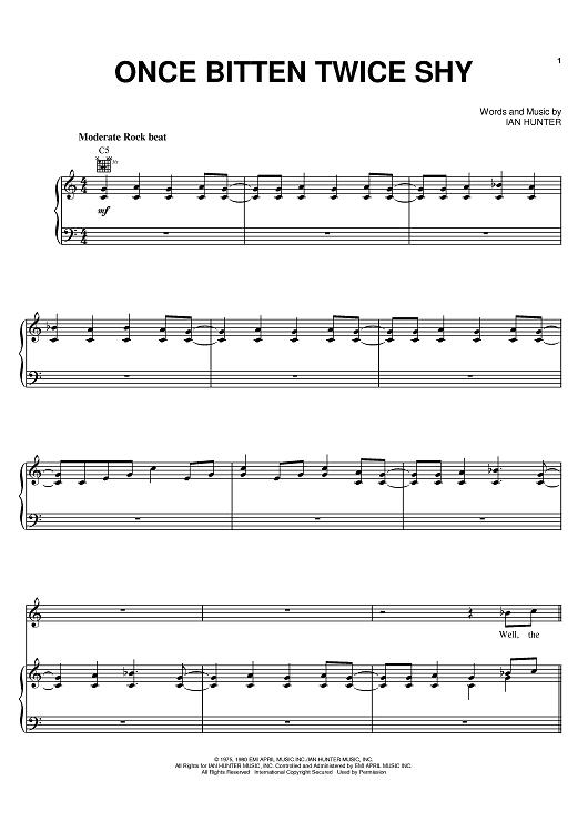 Digital Sheet Music for Once Bitten Twice Shy by Great White, Ian Hunter scored for Piano/Vocal/Chords; id:394521