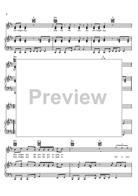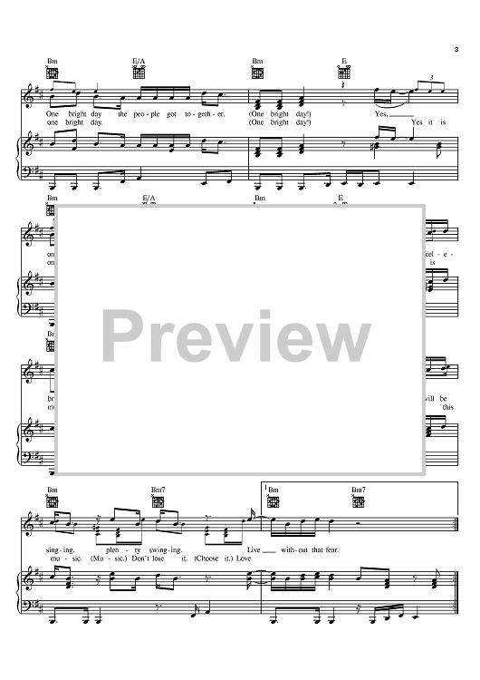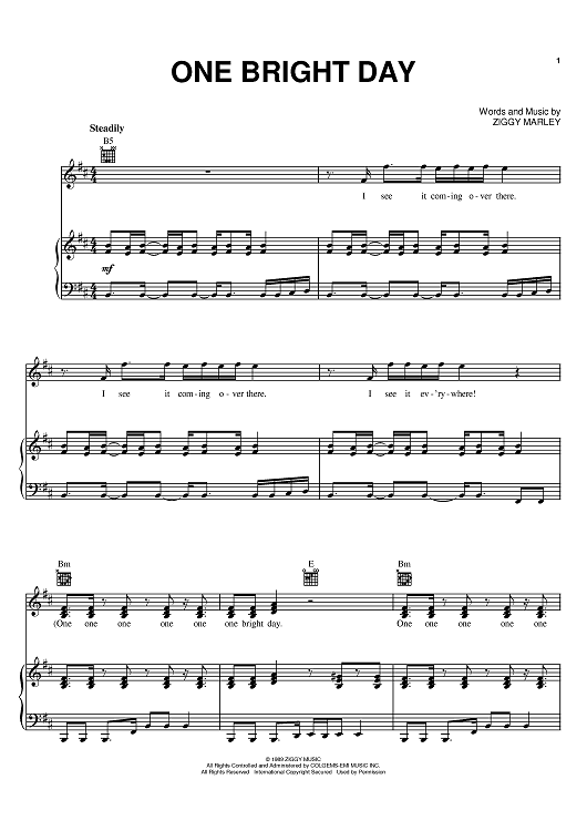 Digital Sheet Music for One Bright Day by Ziggy Marley scored for Piano/Vocal/Chords; id:383571