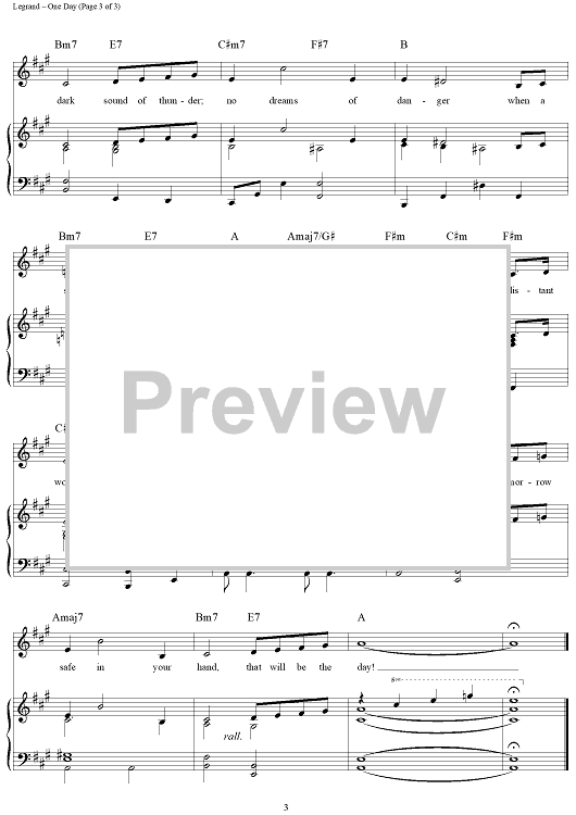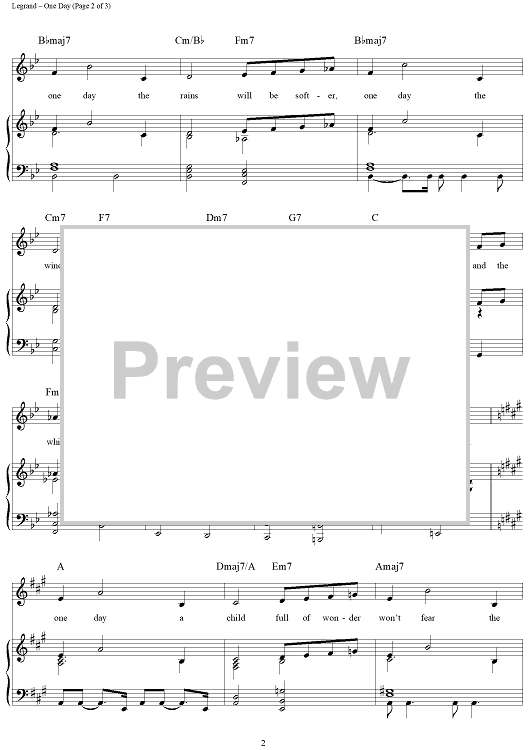 Digital Sheet Music for One Day by Michel LeGrand, Alan Bergman, Marilyn Bergman scored for Piano/Vocal/Chords; id:241170