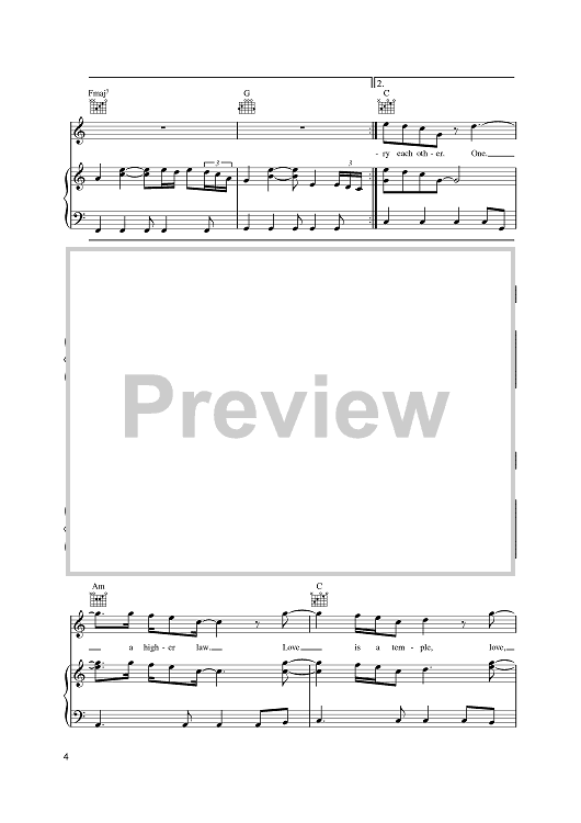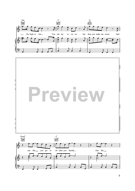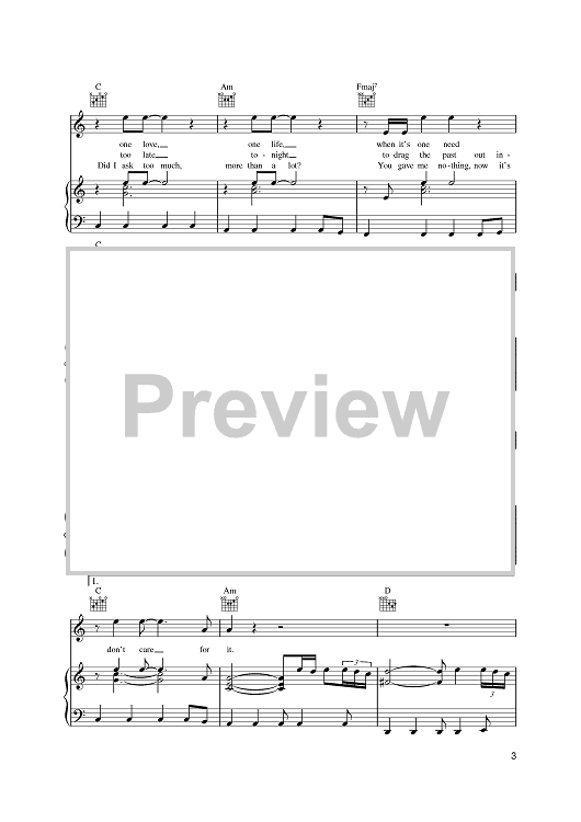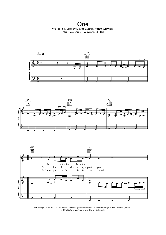 Digital Sheet Music for One by Johnny Cash, U2, David Evans, Adam Clayton, Larry Mullen Jr., Paul Hewson scored for Piano/Vocal/Chords; id:385127