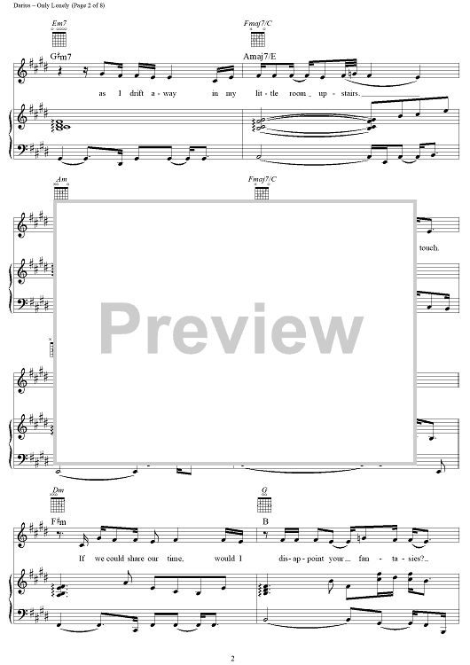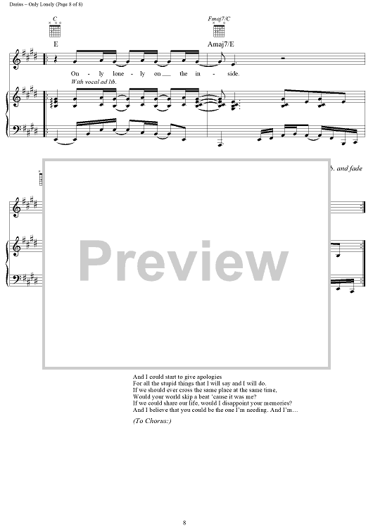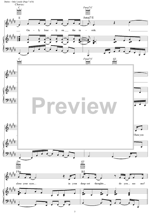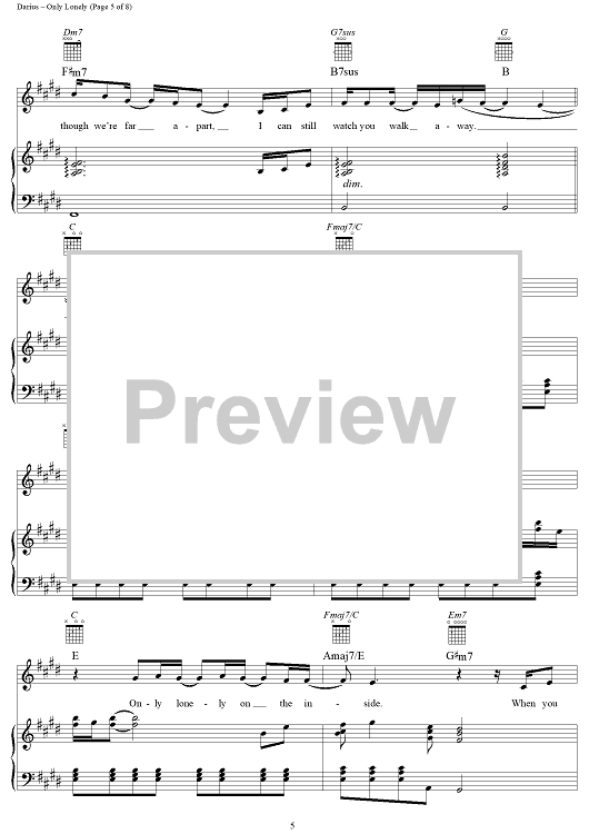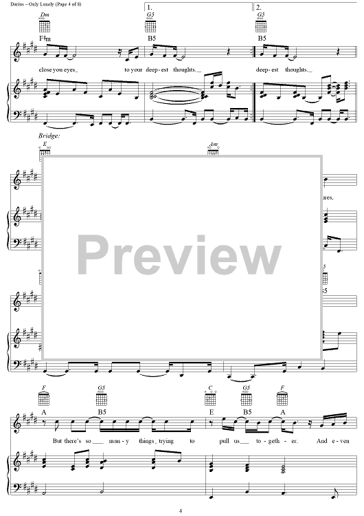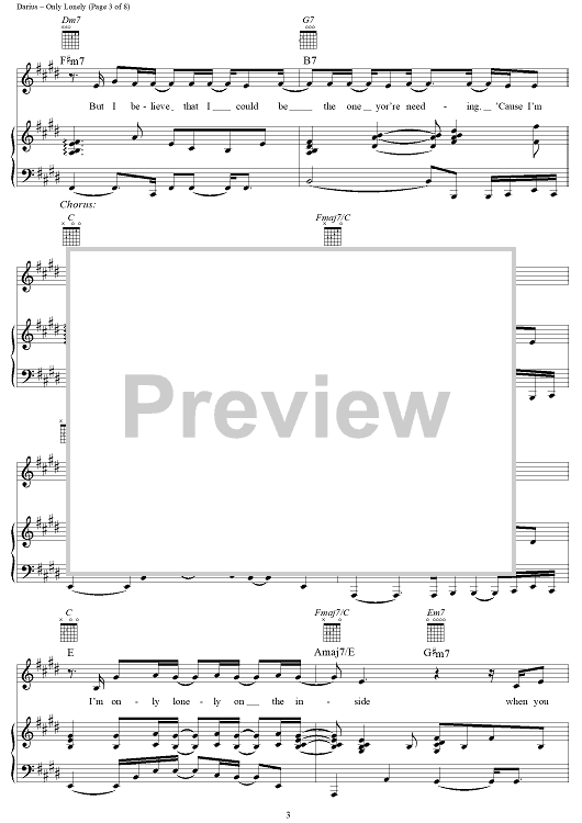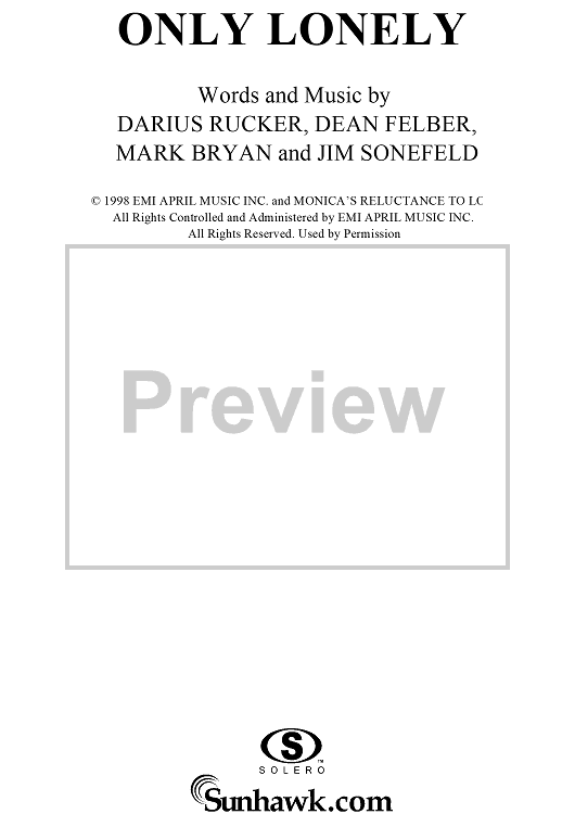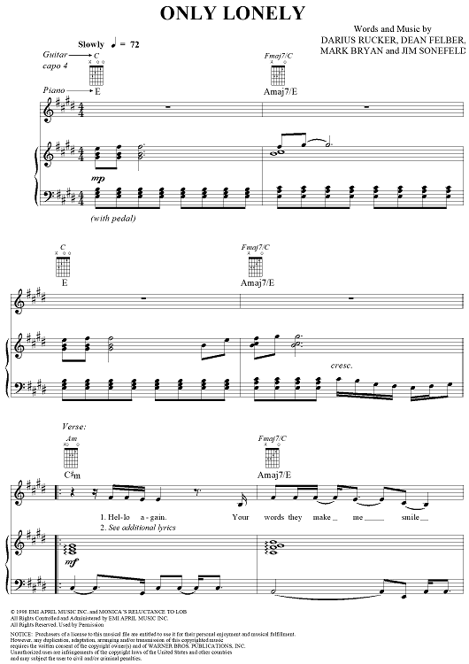 Digital Sheet Music for Only Lonely by Hootie & the Blowfish, Mark Bryan, Jim Sonefeld, Darius Rucker, Dean Felber scored for Piano/Vocal/Chords; id:256256