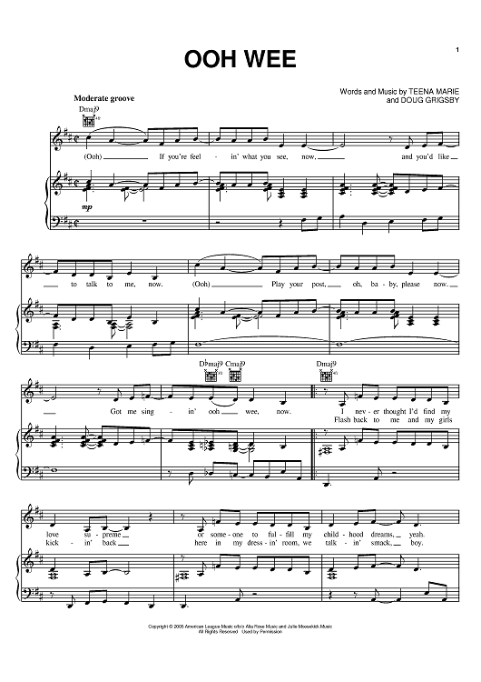 Digital Sheet Music for Ooh Wee by Doug Grigsby, Teena Marie scored for Piano/Vocal/Chords; id:394383
