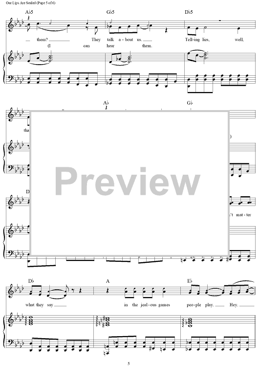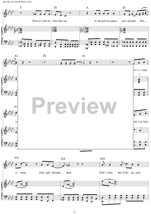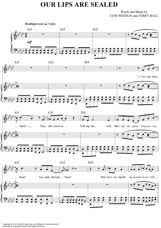 Digital Sheet Music for Our Lips Are Sealed by Jane Wiedlin, The Go-Go's, Terry Hall scored for Piano/Vocal/Chords; id:321162