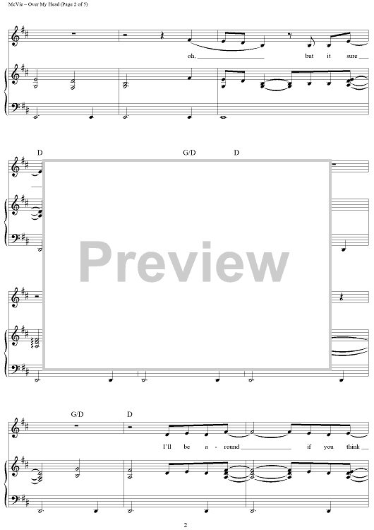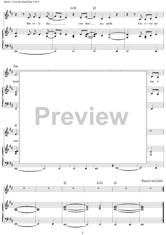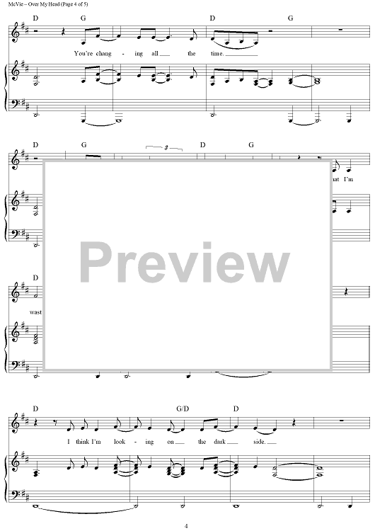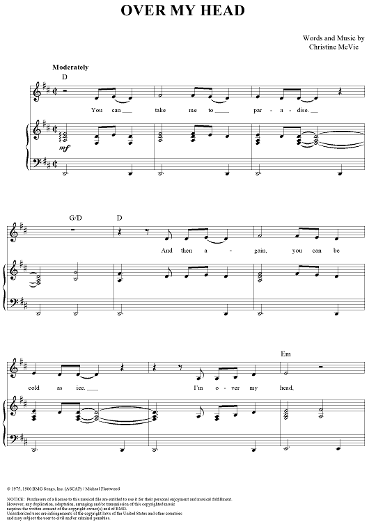 Digital Sheet Music for Over My Head by Christine Perfect McVie, Fleetwood Mac scored for Piano/Vocal/Chords; id:321127