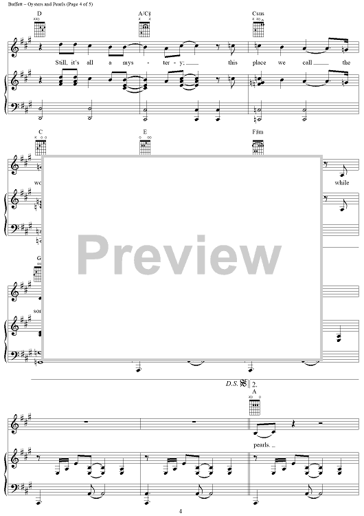 "Oysters and Pearls" Sheet Music by Jimmy Buffett