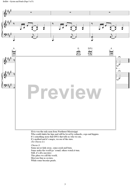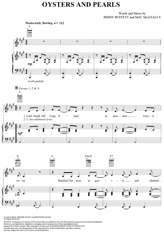 Digital Sheet Music for Oysters and Pearls by Mike Taylor, Mac McAnally, Jimmy Buffett scored for Piano/Vocal/Chords; id:241686