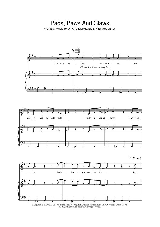Digital Sheet Music for Pads, Paws And Claws by Paul McCartney, Elvis Costello scored for Piano/Vocal/Chords; id:397731