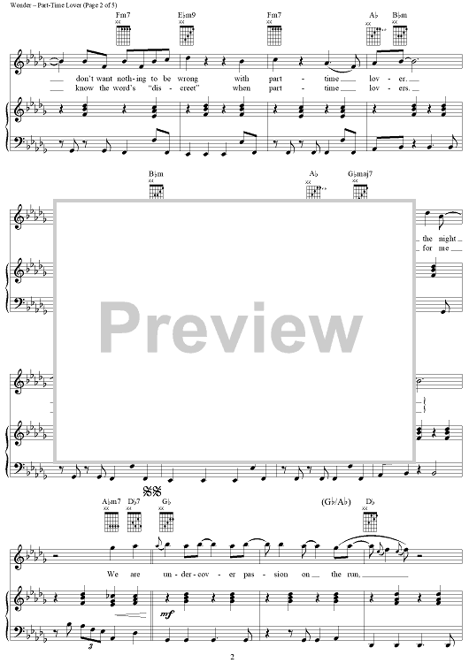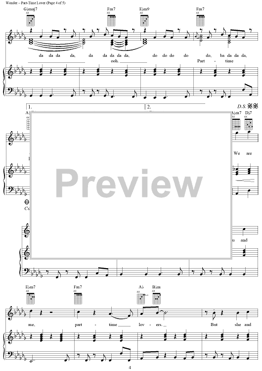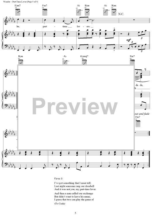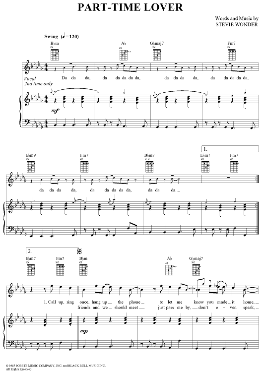 Digital Sheet Music for Part-Time Lover by Stevie Wonder scored for Piano/Vocal/Chords; id:263212