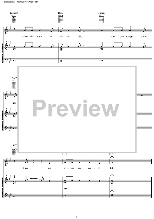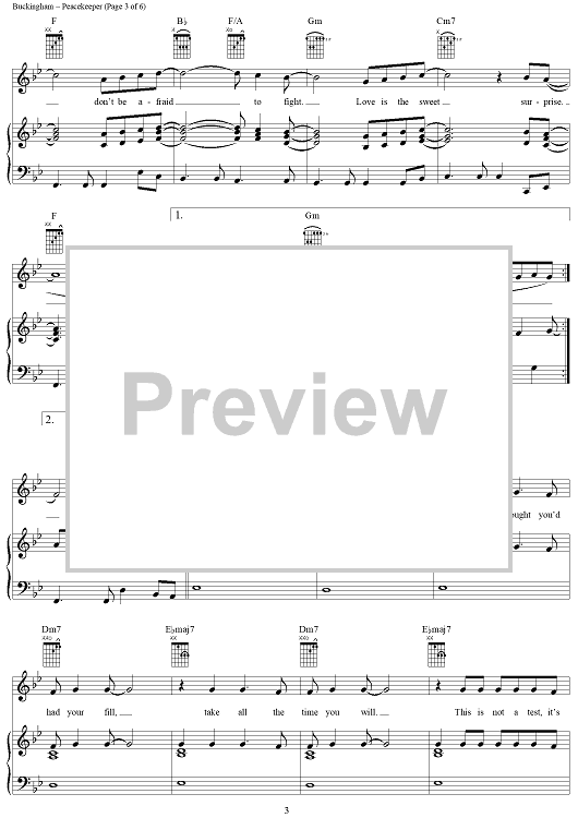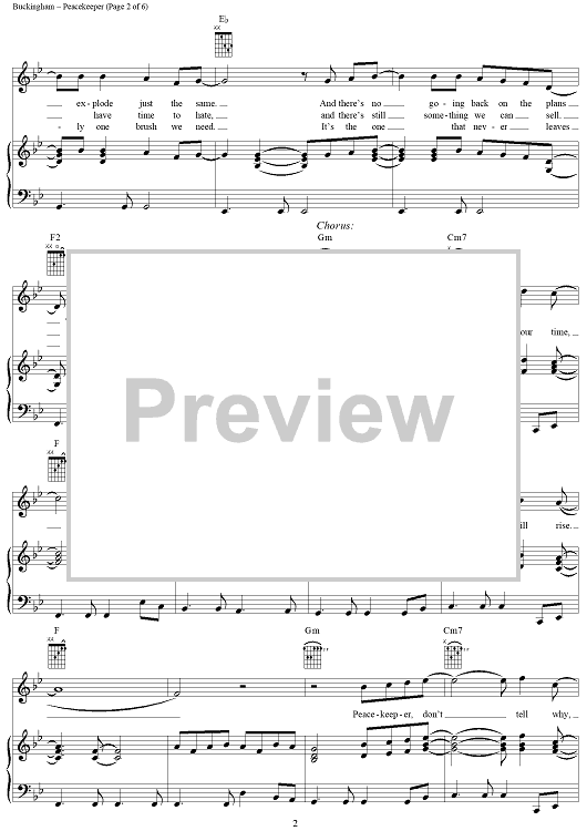 Digital Sheet Music for Peacekeeper by Lindsey Buckingham, Fleetwood Mac scored for Piano/Vocal/Chords; id:296926