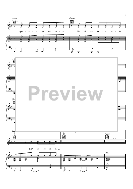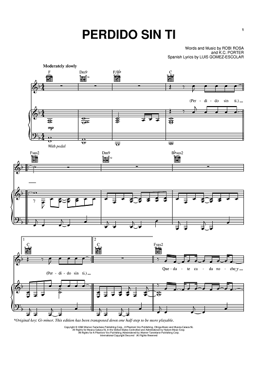 "Perdido Sin Ti" Sheet Music by Ricky Martin