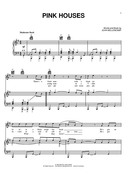"Pink Houses" Sheet Music by John Cougar Mellencamp