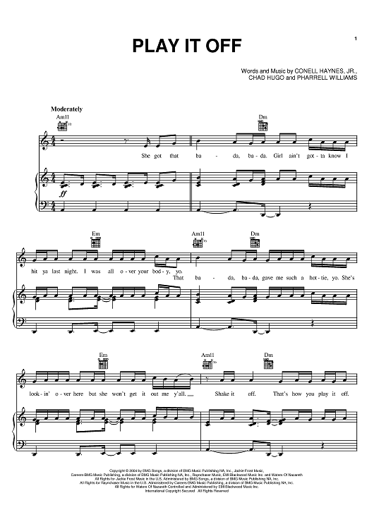 Digital Sheet Music for Play It Off by Chad Hugo, Pharrell Williams, Nelly, Cornell Haynes scored for Piano/Vocal/Chords; id:383611