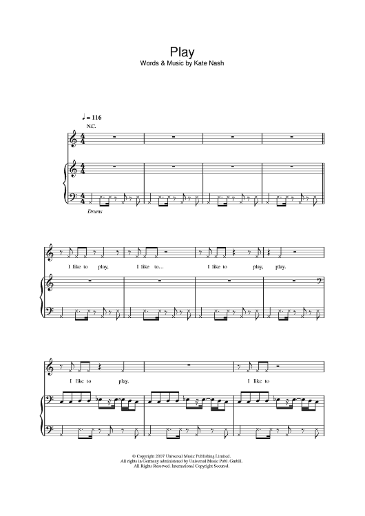 Digital Sheet Music for Play by Kate Nash scored for Piano/Vocal/Chords; id:401926
