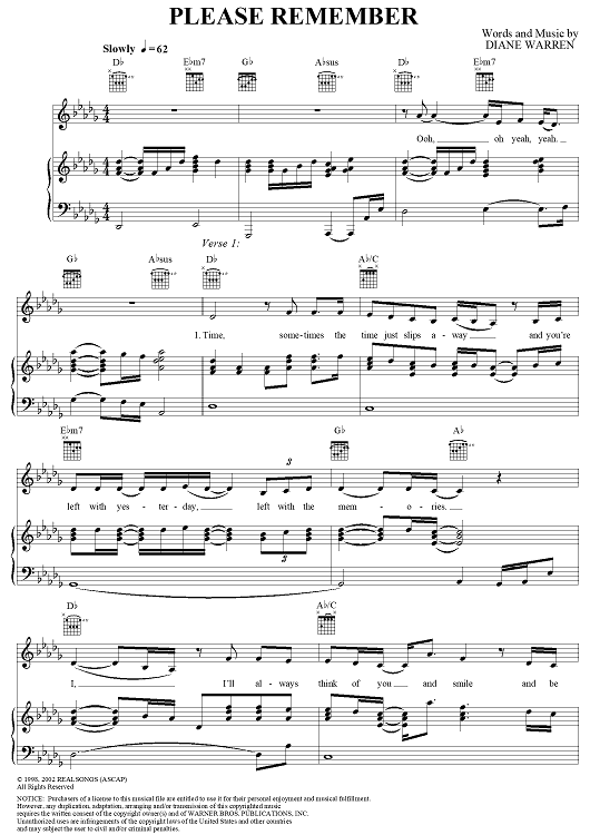 Digital Sheet Music for Please Remember by Diane Warren, LeAnn Rimes scored for Piano/Vocal/Chords; id:289620