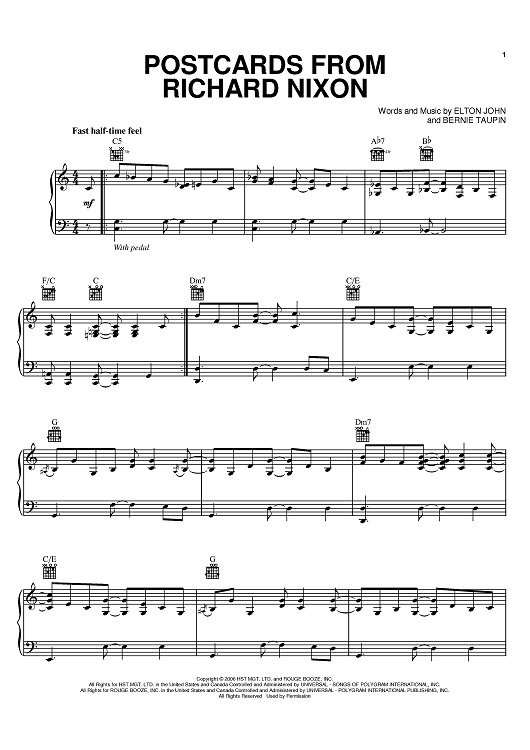 Digital Sheet Music for Postcards From Richard Nixon by Elton John, Bernie Taupin scored for Piano/Vocal/Chords; id:396316