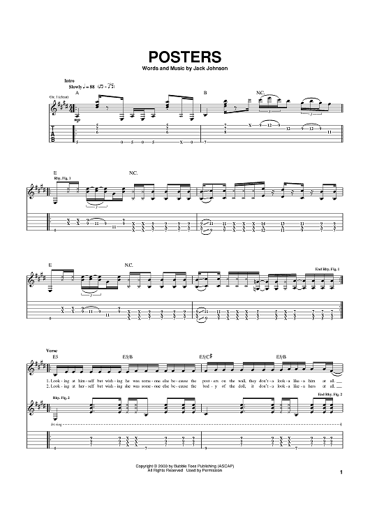 Digital Sheet Music for Posters by Jack Johnson scored for Guitar Tab; id:370635