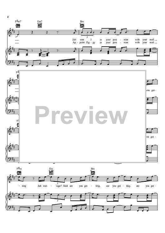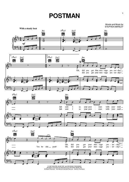 Digital Sheet Music for Postman by Stephen Marley, Ziggy Marley scored for Piano/Vocal/Chords; id:383580
