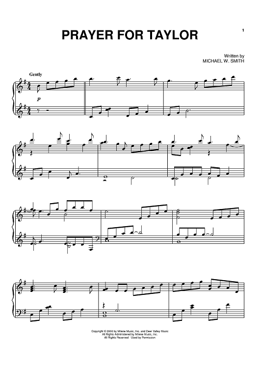 "Prayer For Taylor" Sheet Music by Michael W. Smith