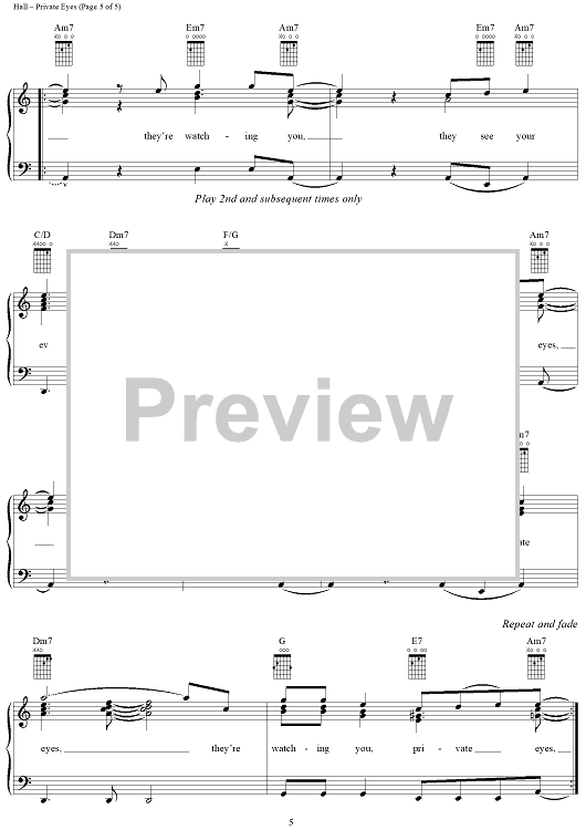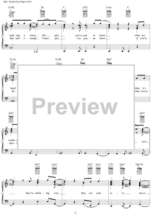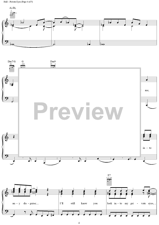 Digital Sheet Music for Private Eyes by Daryl Hall, Sara Allen, Janna Allen, Warren Pash scored for Piano/Vocal/Chords; id:355952