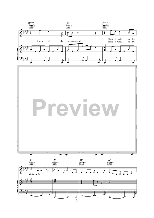 Digital Sheet Music for Queen Of The Underworld by Jesse Malin scored for Piano/Vocal/Chords; id:382890