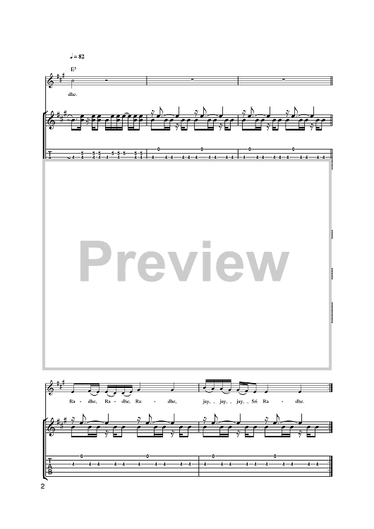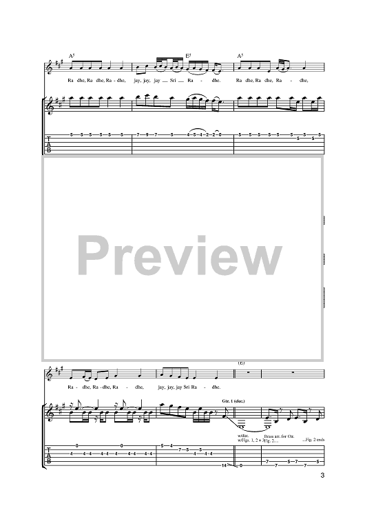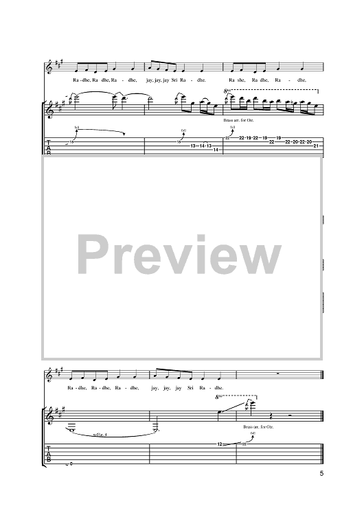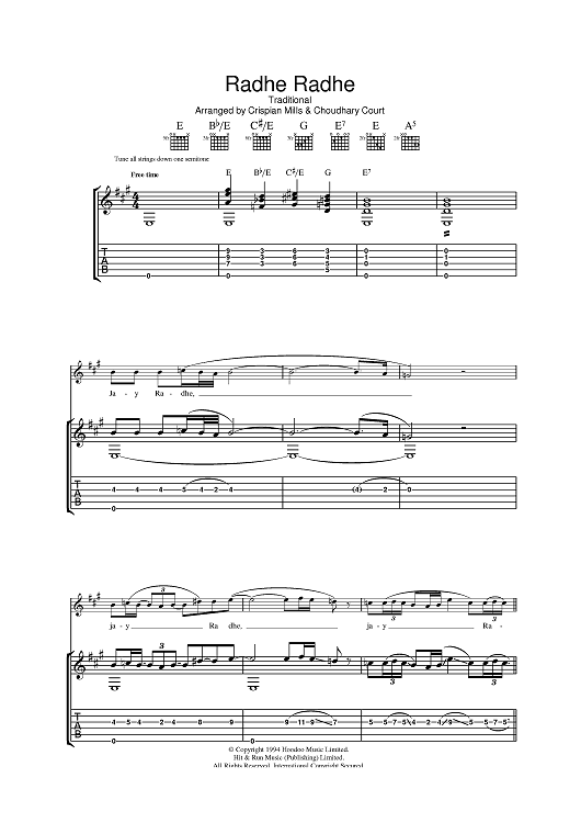 Digital Sheet Music for Radhe Radhe by Choudhary Court, Kula Shaker, Crispian Mills scored for Guitar Tab; id:394678