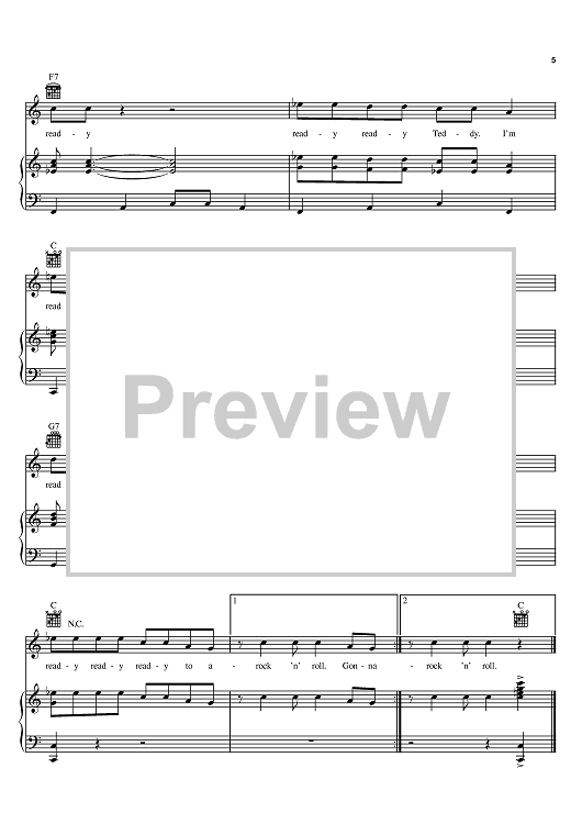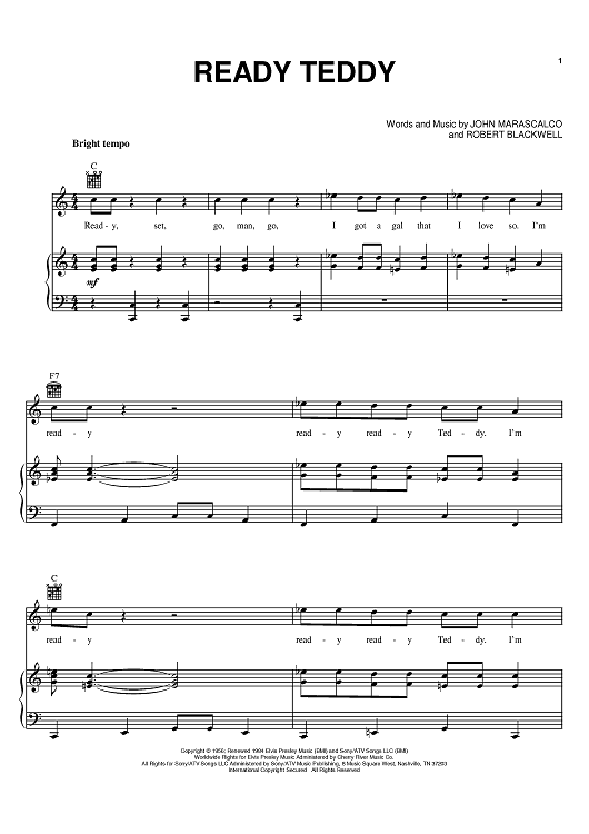 Digital Sheet Music for Ready Teddy by Elvis Presley, Robert Blackwell, Little Richard, John S. Marascalco scored for Piano/Vocal/Chords; id:368118