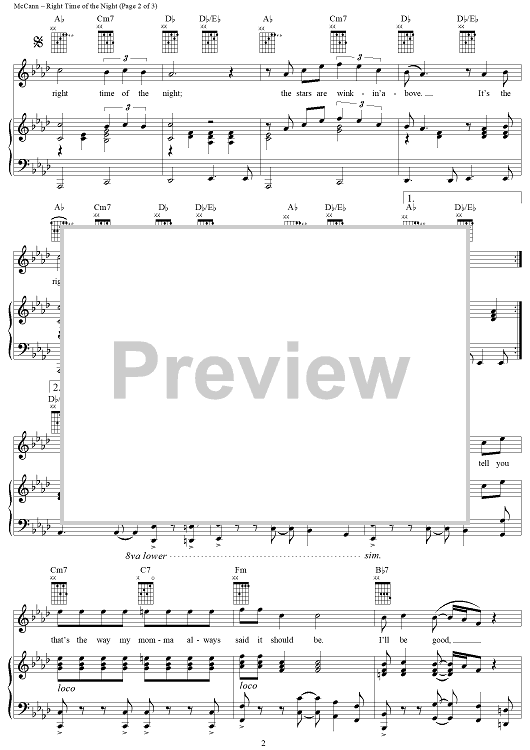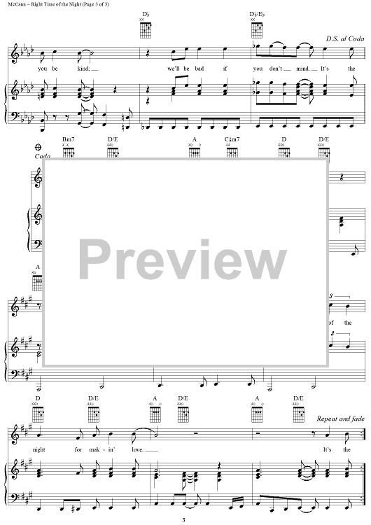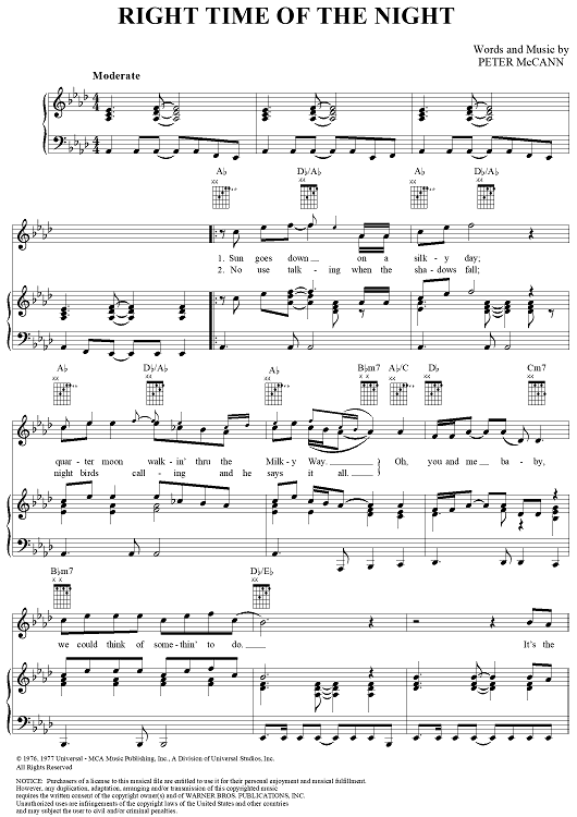 Digital Sheet Music for Right Time of the Night by Peter McCann, Jennifer Warnes scored for Piano/Vocal/Chords; id:286552