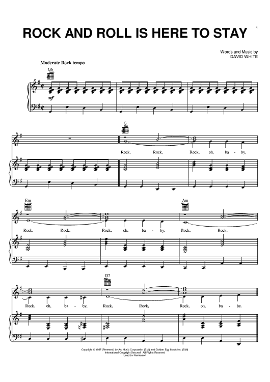 Digital Sheet Music for Rock And Roll Is Here To Stay by Danny & the Juniors, David White scored for Piano/Vocal/Chords; id:368496