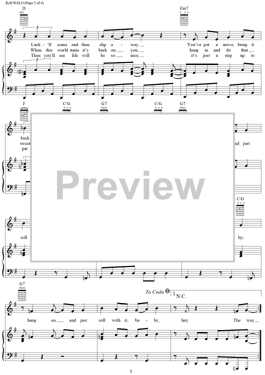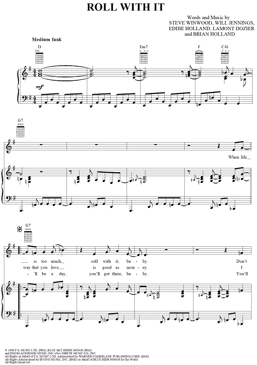 Digital Sheet Music for Roll With It by Will Jennings, Steve Winwood, Lamont Dozier, Brian Holland, Eddie Holland scored for Piano/Vocal/Chords; id:124201