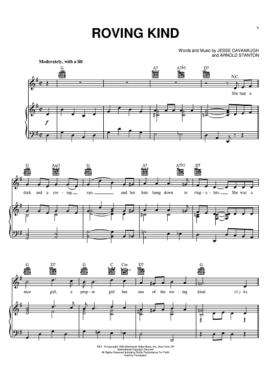 Digital Sheet Music for Roving Kind by Guy Mitchell, Jesse Cavanaugh, Arnold Stanton scored for Piano/Vocal/Chords; id:395168