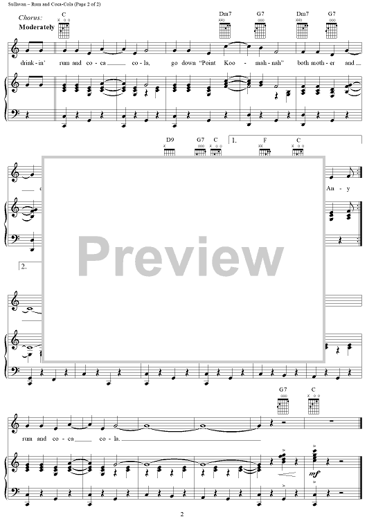 Digital Sheet Music for Rum and Coca-Cola by Al Stillman, Paul Baron, Jeri Sullavan scored for Piano/Vocal/Chords; id:259449